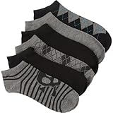 Blue Crown ankle socks. Six pairs. Stripes, argyle, and checkers. 54% acrylic/35% polyester/8% cotton/2% spandex/1% rubber. Machine wash. Imported. Read more